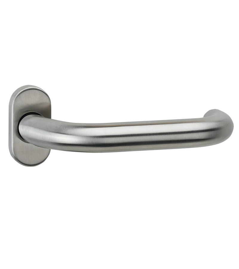 Türdrücker Lochteil Edelstahl fest drehbar auf ovaler Rosette